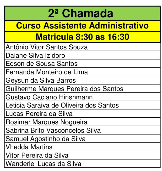 Confira a segunda lista dos selecionados para os cursos de Assistente Administrativo e Gestão para o Comércio.